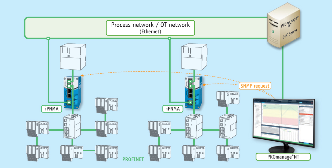 将 iPNMA 测量点集成到 PROFINET 网络中,并通过 PROmanage® NT 评估数据