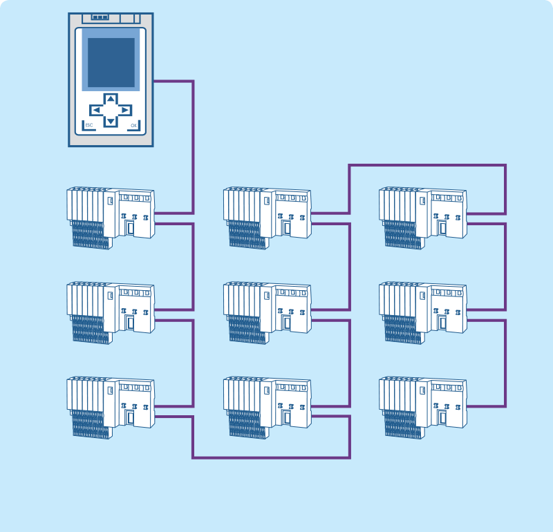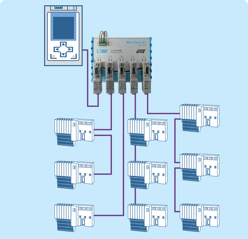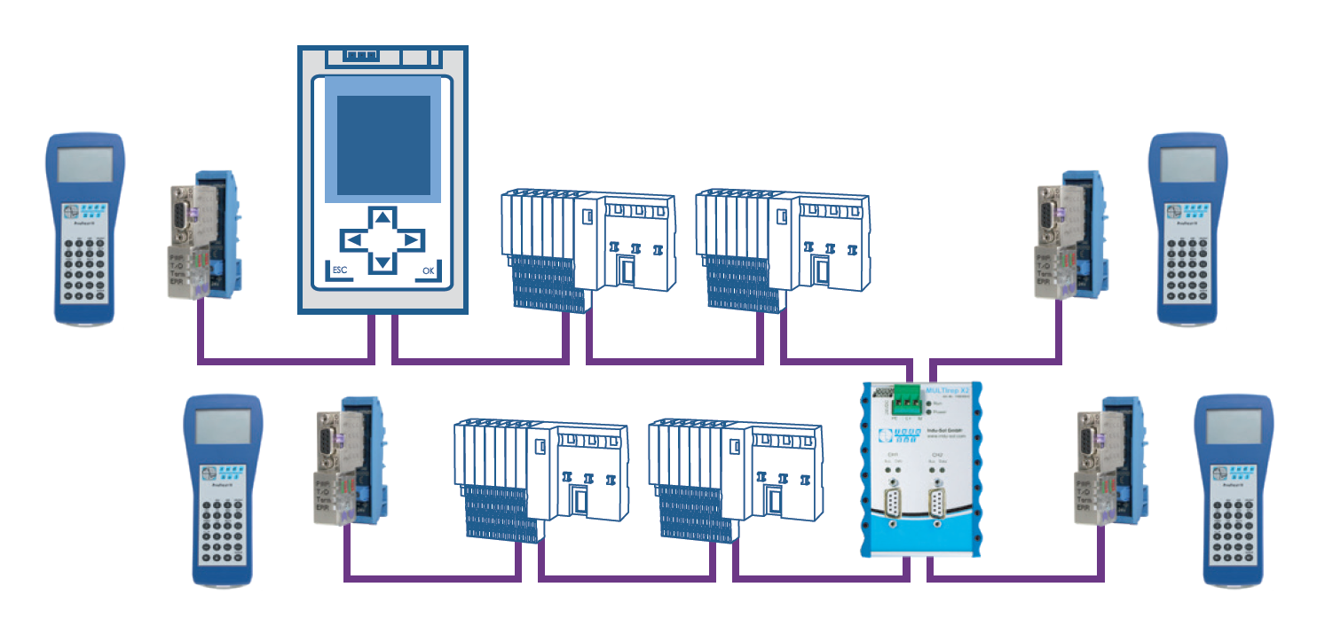 - 利用 PROFIBUS 中继器系列 "MULTIrep",可根据设备模块将网络划分为两个、五个或七个电隔离段。