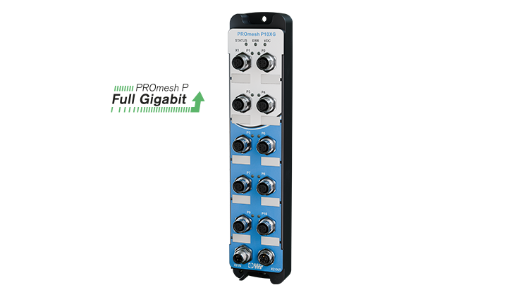 PROmesh P10XG 是一款全千兆工业以太网交换机,专为数据密集型的工业 4.0 和智能工厂网络设计。PROmesh P10XG 配备10个 M12 X 型接口,每个接口提供 1 Gbit/s 的带宽,可为机器人、运动控制和视觉系统等高带宽应用提供卓越的性能和可靠性。
