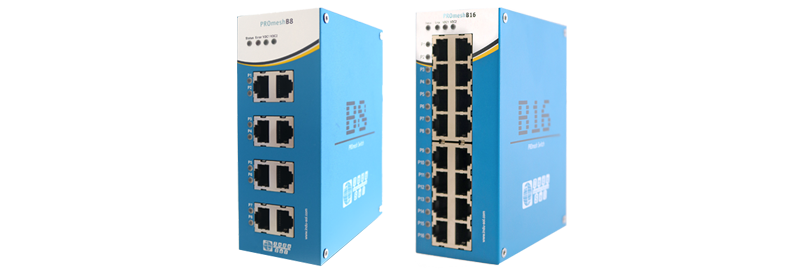 - PROmesh B16 : 适用于 EtherNet / IP、网络负载等级 III、16x RJ45(最高 100 mbps)
